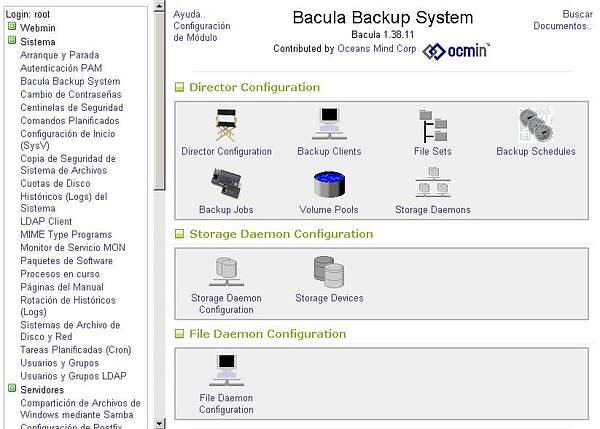 Como somos unos chicos muy cómodos, y siempre tratamos de memorizar el menor número de comandos y de sistgaxix de ficheros de configuración posibles, instalaremos bácula para ser configurado desde Webmin: