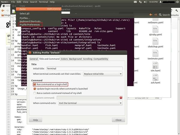 For .bashrc executing purposes, and execute RVM ruby version when open a project, you can integrate RVM with your Gnome terminal: