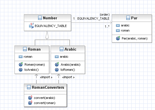 Finally, a class diagram illustrating the Open/Close principle which I tried to follow, here we can add more numeric systems only by adding the corresponding Number subclasses (Octal, Hexadecimal,...):