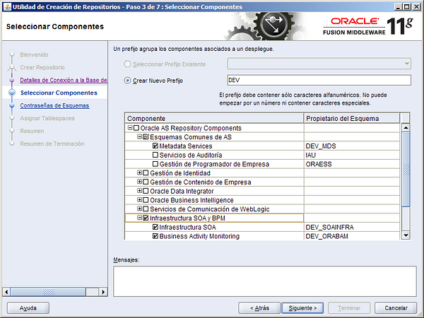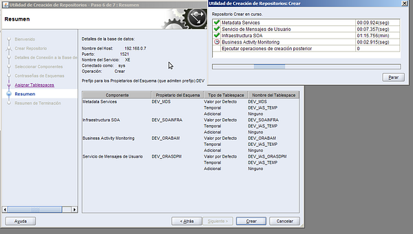 Con esto creamos los esquemas en nuestra BBDD de todos los productos SOA.