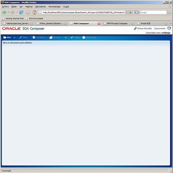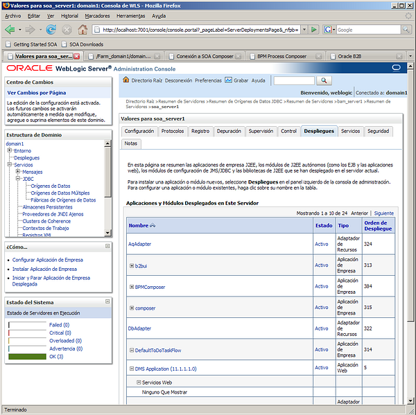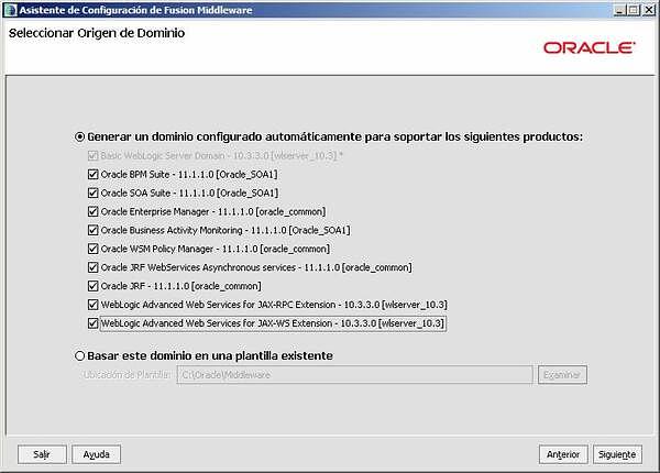 Crear un nuevo dominio de Weblogic, con todos los productos SOA: