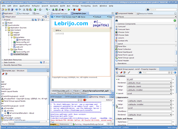 Para probar la plantilla tenemos que crear una New > Web Tier >JSF Page (templateTest.jspx) eligiendo como plantilla la que hemos creado.