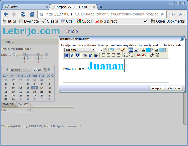 Aug 22, 10 by Juan Lebrijo about JDeveloper, blog, Java, Web