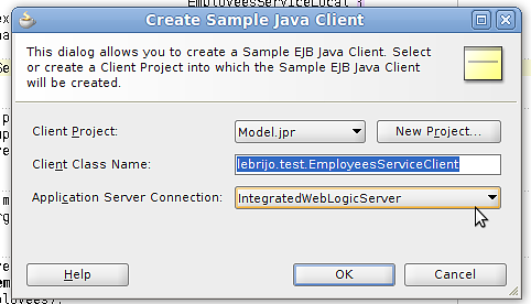 Podemos probar el servicio con el botón derecho sobre el EmployeesServiceBean > Create Sample Java Client, en el que crearemos lebrijo.test.EmployeesServiceClient:
