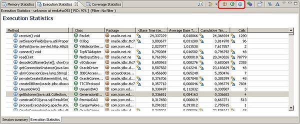 Se puede también ver las estadísticas agrupadas por métodos o clases: