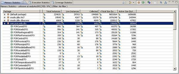 De aquí podemos ir deduciendo qué objetos crecen en número o uso de memoria constantemente, cuales usan más la CPU o la memoria, etc: