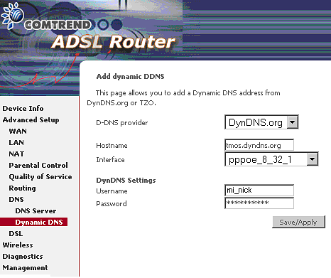 Así, cada vez que cambie la IP, se lo notificará a dyndns.org. De este modo cada vez que pregunten a sus servidores por la dirección tmos.dyndns.org, contestarán con nuestr nueva IP notificada por el router.