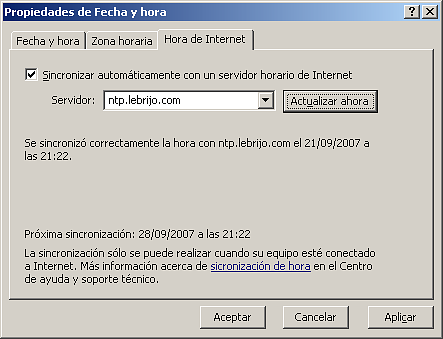 Sep 21, 07 by Juan Lebrijo about blog, Services, NTP